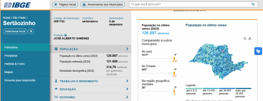 Sertãozinho, que tem uma estimativa de cerca de 131.600 habitantes, segundo dados de julho de 2024, do IBGE, conseguiu 209 respostas à pesquisa. E a região turística Raízes do Campo, a qual faz parte, obteve um resultado de 1.432 respostas. Em primeiro lugar nas respostas ficou o município de Barretos/SP, que obteve um total de 839 respostas.