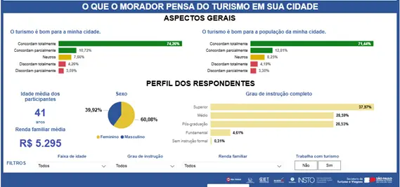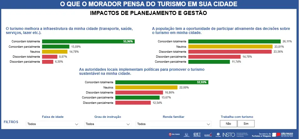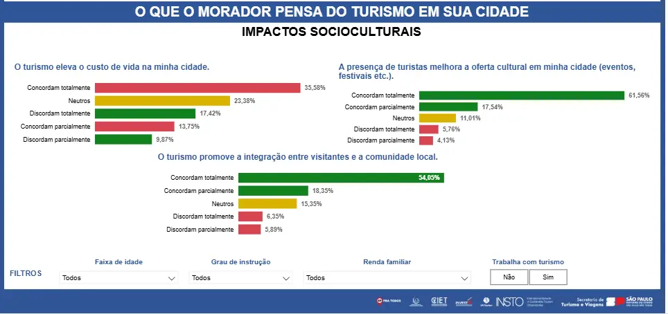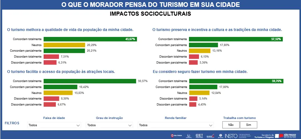 A pesquisa acontece pelo quinto ano consecutivo e mostra aos gestores públicos como a população está enxergando o turismo local, com o objetivo de que possam medir e monitorar essa satisfação e as percepções dos habitantes sobre os impactos socioculturais, ambientais, econômicos e de planejamento e gestão da atividade turística, a fim de garantir que o crescimento sustentável do turismo no estado de São Paulo esteja alinhado com os valores de sua população.